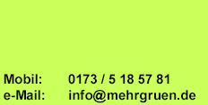 Seit mehr als 10 Jahren führt die Firma mehrgrün professionelle Gartenpflege und naturnahe Gartengestaltungen durch. Die Gartenpflege umfasst alle Maßnahmen, die Gärten und Grünflächen zu Oasen der Natur machen. Die Stärkung der Bodenfruchtbarkeit ist nach unserer Erfahrung der wesentliche Schlüssel zu einem gesunden Garten. Aus diesem Grund setzen wir fast ausschließlich organische Düngemittel ein. Wir gestalten ansprechende Gärten, die sich harmonisch einpassen, die gesund und pflegeleicht sind. Wir begegnen den Menschen mit offenen Ohren und Augen, um mit Ihnen zusammen Gärten der Begegnung zu schaffen. |